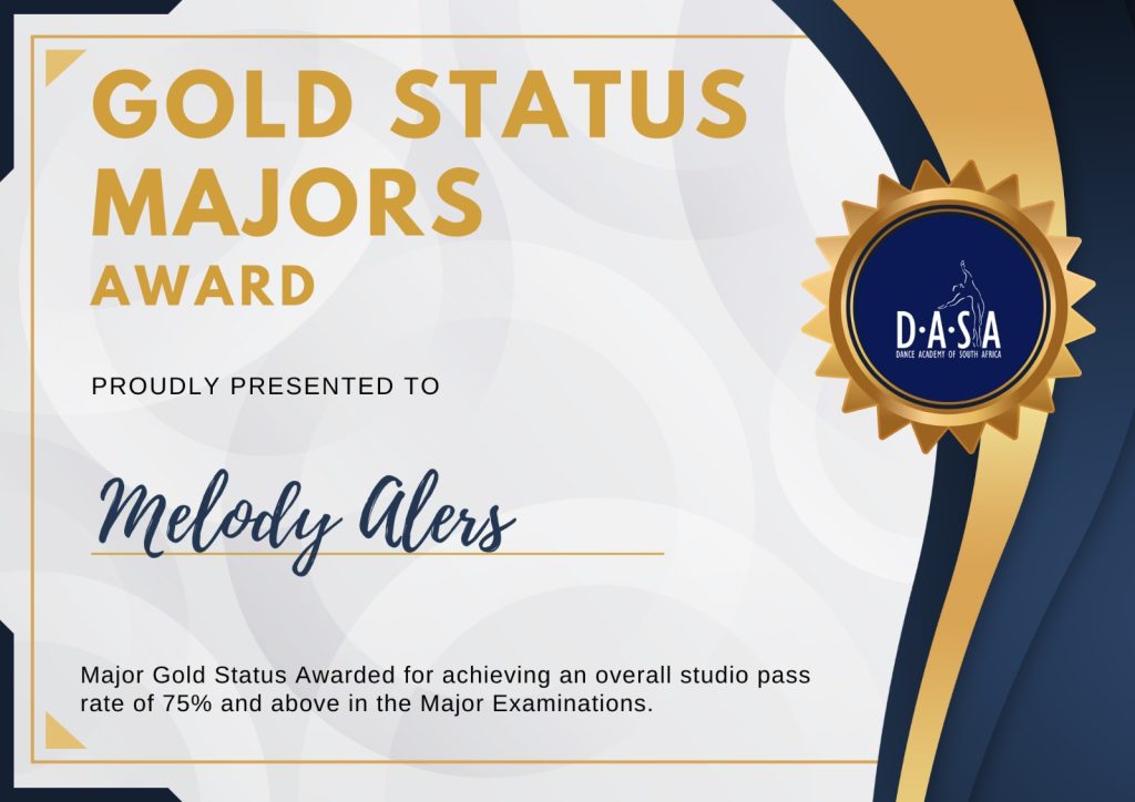 ReadWe proudly announce that our studio has received Gold Status for Majors, a prestigious recognition from the Dance Academy of South Africa